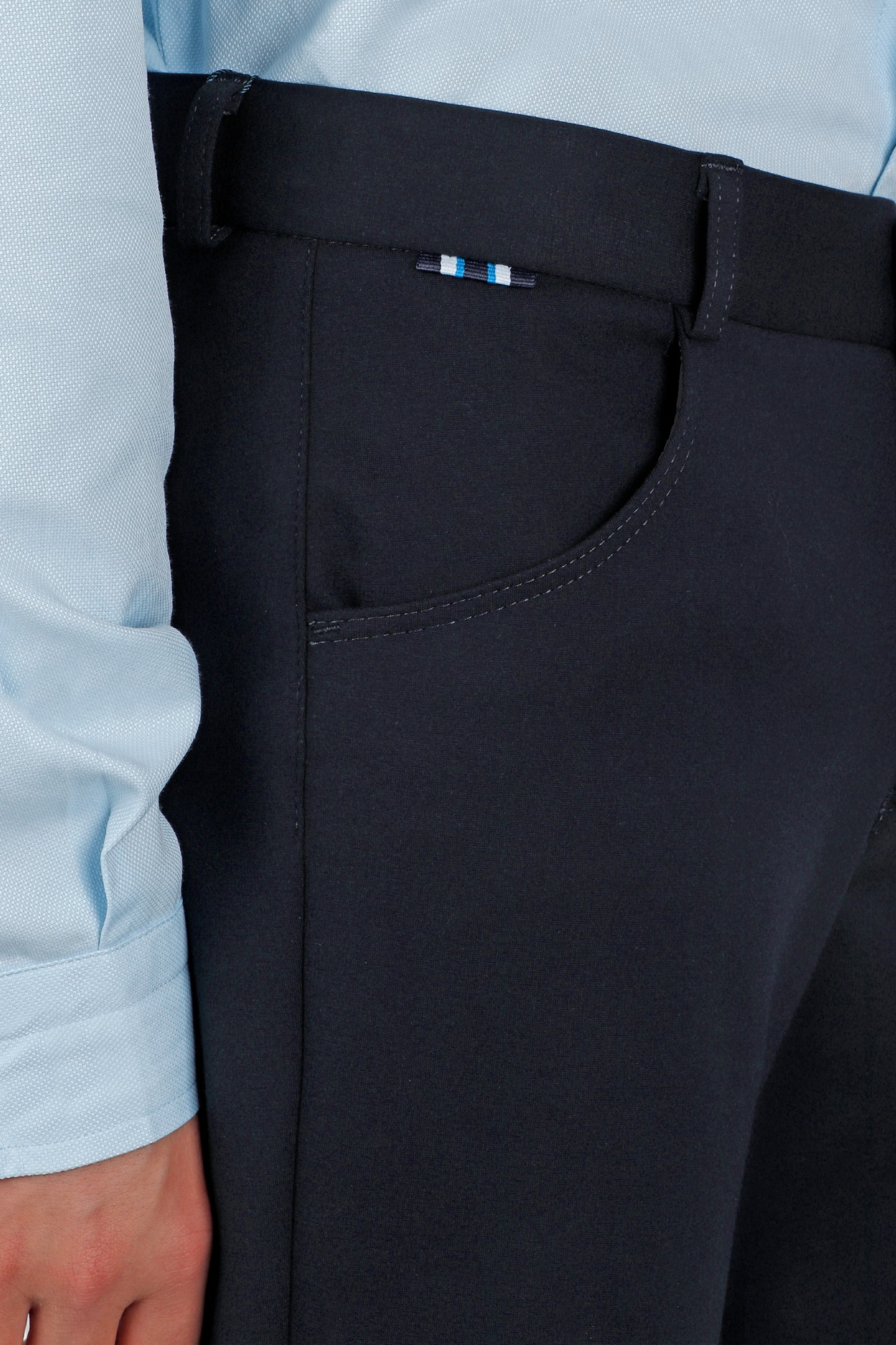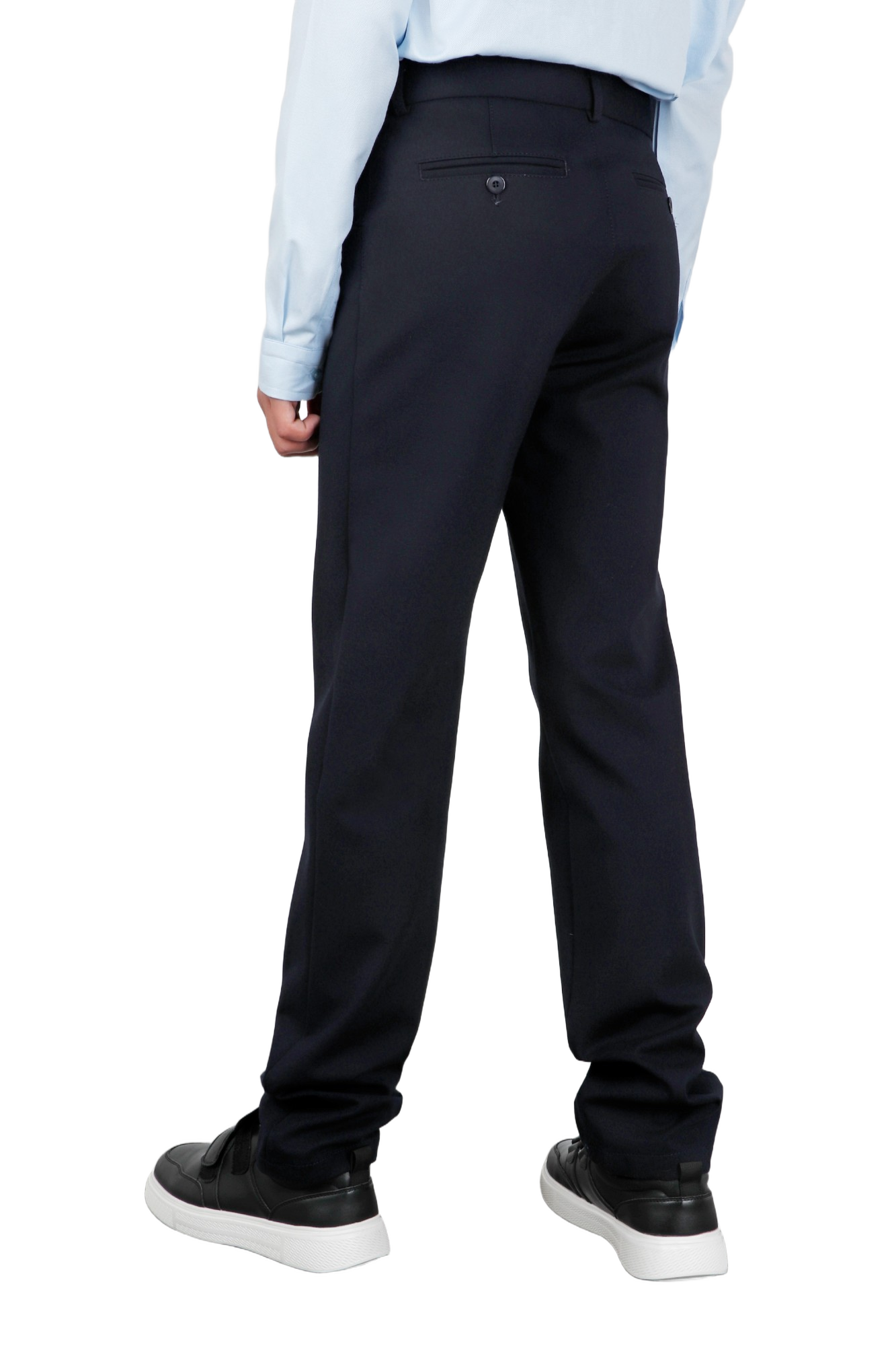 Школьные брюки для мальчика. Модель из плотного эластичного трикотажа. Застежка на молнию и пуговицу, пояс с восможностью регулировки объема талии.