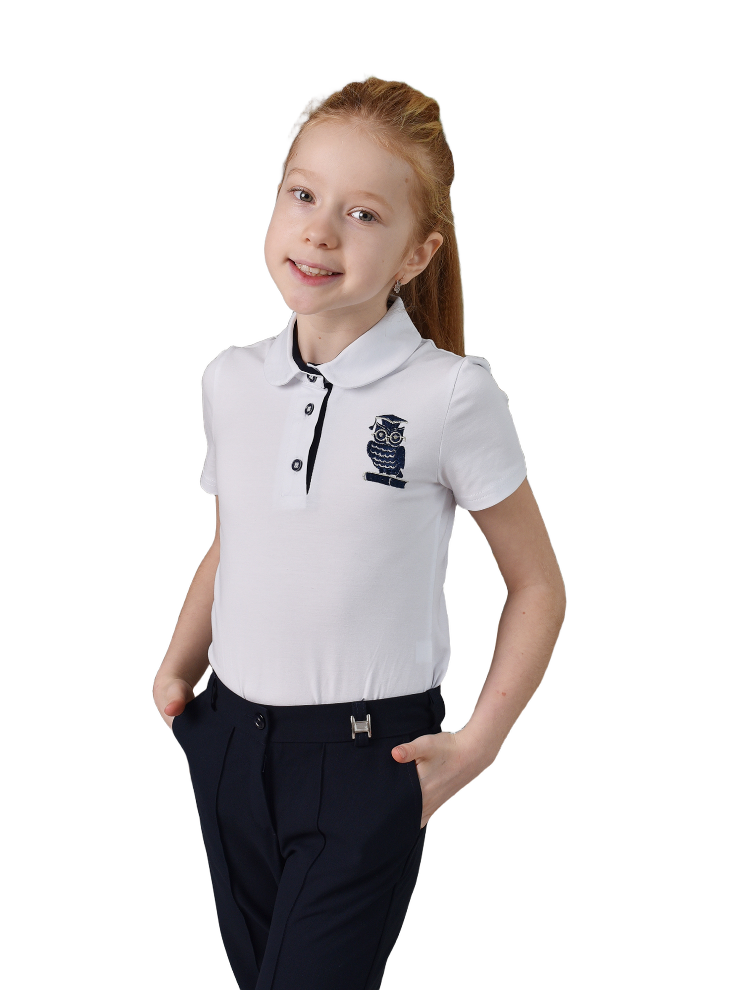 Поло дев. КМ19398 короткий рукав белый/синий