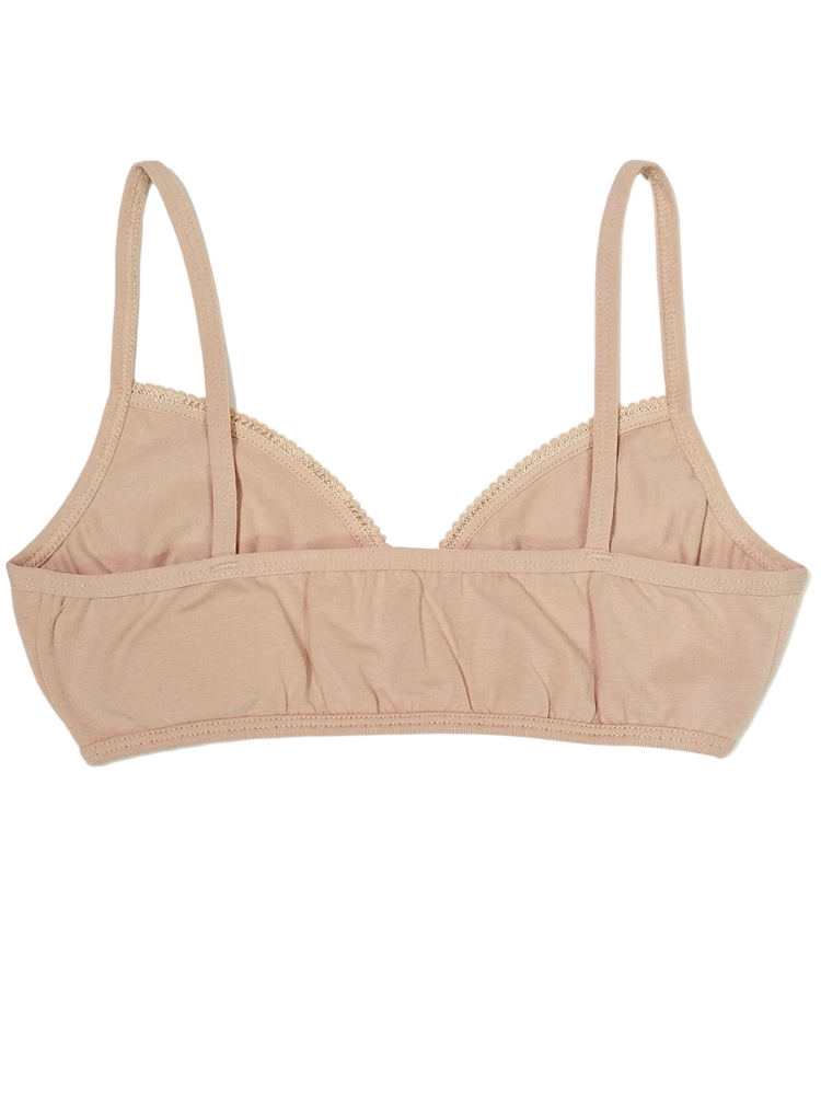 Топ на тонких бретелях. Выполнен из эластичного х/б трикотажа кулирное полотно. Чашечки с вытачкой, декорированы резинкой с фестончатым краем. Низ топа, вырез на спинке и проймы отделаны трикотажным кантом. Материал - кулирка (трикотажное полотно).