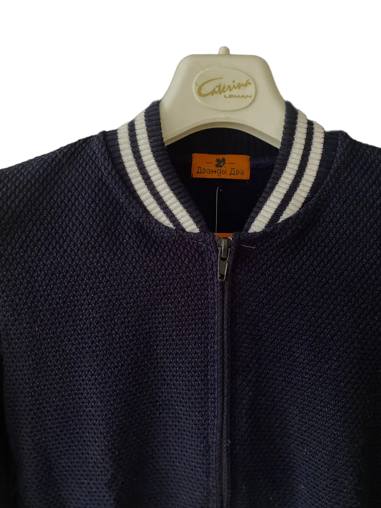 Классический вязаный бомбер с белой полосой на молнии отлично подойдет для посещения школы,официальных мероприятий и для повседневной носки.